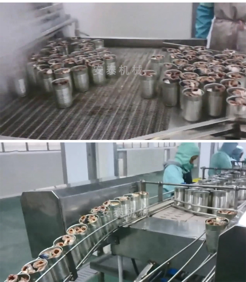 解凍——切斷——清洗——裝罐——蒸煮——加湯汁——真空封罐——高溫殺菌——噴碼——裝箱——碼垛